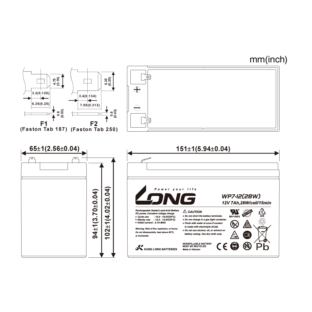 Long Battery WP7-12 | แบตเตอรี่ 12V 7Ah – สำหรับ UPS กำลังสูง