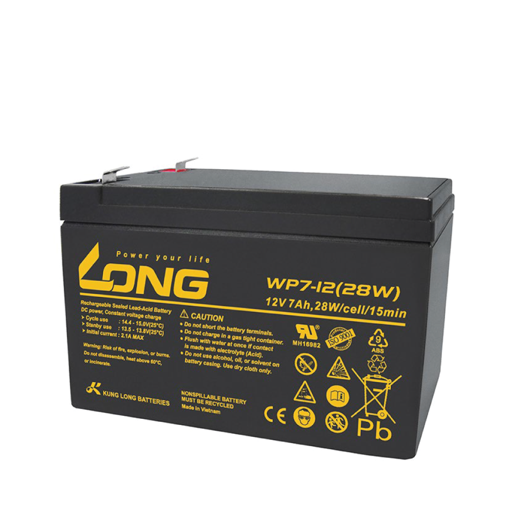 Long Battery WP7-12 (28W) – แบตเตอรี่ 12V 7Ah VRLA สำหรับ UPS แบตเตอรี่คุณภาพสูง มาตรฐานสากล อายุการใช้งาน 3–5 ปี ทนทาน ปลอดภัย ไม่ต้องบำรุงรักษา เหมาะสำหรับการใช้งานกับเครื่องสำรองไฟ (UPS), ระบบสื่อสาร และอุปกรณ์รักษาความปลอดภัย